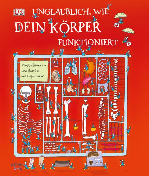 Dieses Kindersachbuch mit den abwechslungsreichen und äusserst peppigen Illustrationen hat sechs doppelt ausklappbare Seiten, auf denen viele Informationen über unserere Körpersysteme wie Verdauung, Atmung, Blutkreislauf, Abwehrsystem, Bewegung und Gehirn geboten werden. Kleine Männchen in Ganzkörperanzügen begleiten die Leserschaft bei einer Art Entdeckungsreise durch unseren Körper und liefern zusätzlich viele wertvolle Informationen. Zwischen den Ausklappseiten befindet sich immer noch eine Sonderseite, auf dieser der Körper aus einer ungewohnten Perspektive betrachtet wird, etwa wie Leben überhaupt entstehen kann oder mit welchen Mitteln das Körperinnere erforscht wird; welche Aufgaben die Haut hat oder wie sich der Mensch verständigt; wie die bekanntesten Ärzte und Mediziner hiessen oder was die moderne Medizin alles ermöglicht. Das Glossar und ein Register runden das ansprechend kunterbunte, sehr informative Sachbuch ab.